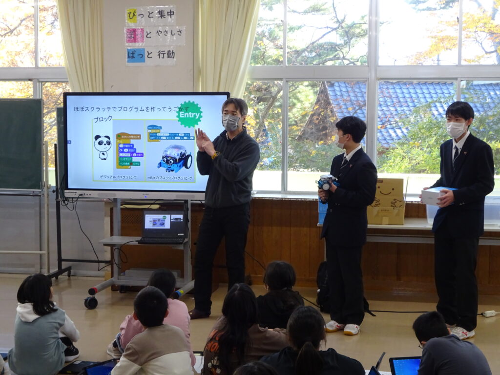 本校情報メディア科の2年生が、小学校を訪問し「mBot(エムボット)」を使ったプログラミング教室を行いました。