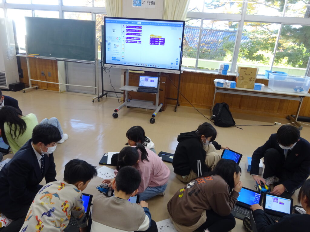 児童たちは、ロボットを動かすためのプログラムを考えながら、楽しそうに操作を行っていました。高校生も児童のサポートを通して教えることの楽しさや難しさを学び、互いに充実した時間を過ごすことができました。
