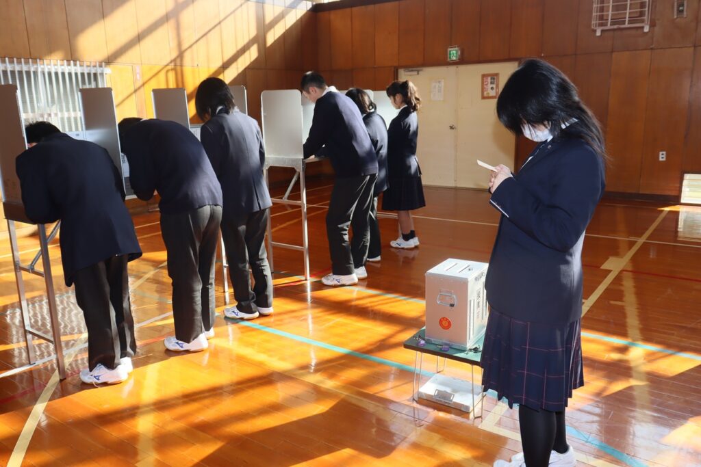 11月27日(木)、令和7年度 選挙啓発講座・生徒会役員選挙を、全校生徒を対象に実施しました。