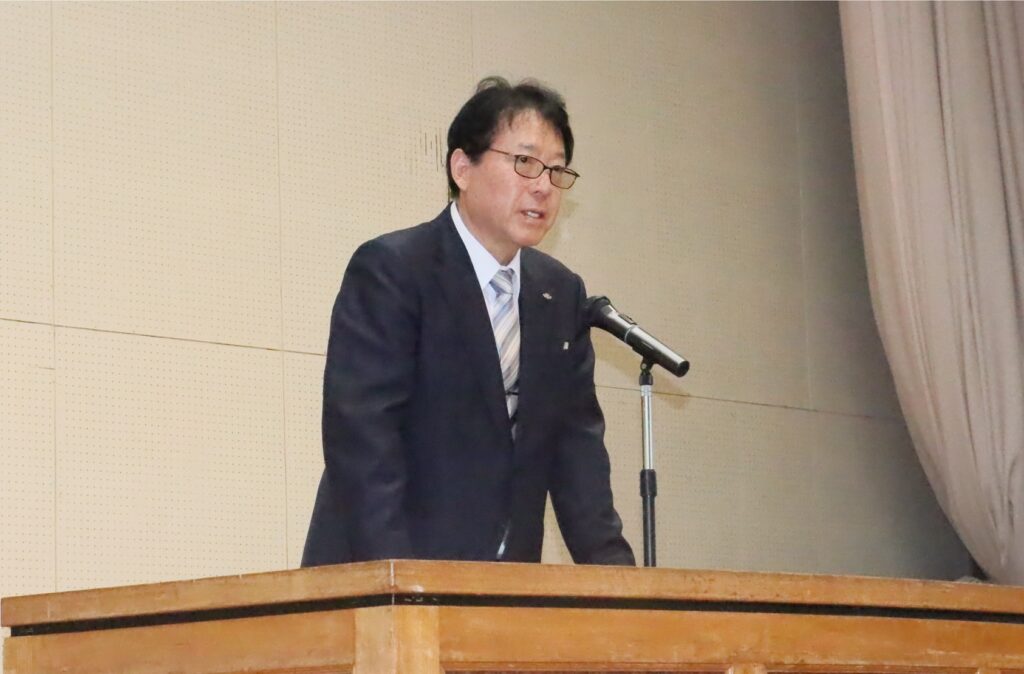 続いて、修了式が行われました。木村校長が、令和7年度を振り返りながら、リベリア共和国との国際交流や、大阪・関西万博2025へ生徒代表が参加したこと、学習センターの開設など、にかほ市と様々な協業を行ったこと、次年度に向けて「各学年の生徒が自分自身の目標を持って取り組みましょう」と、お話をいただきました。