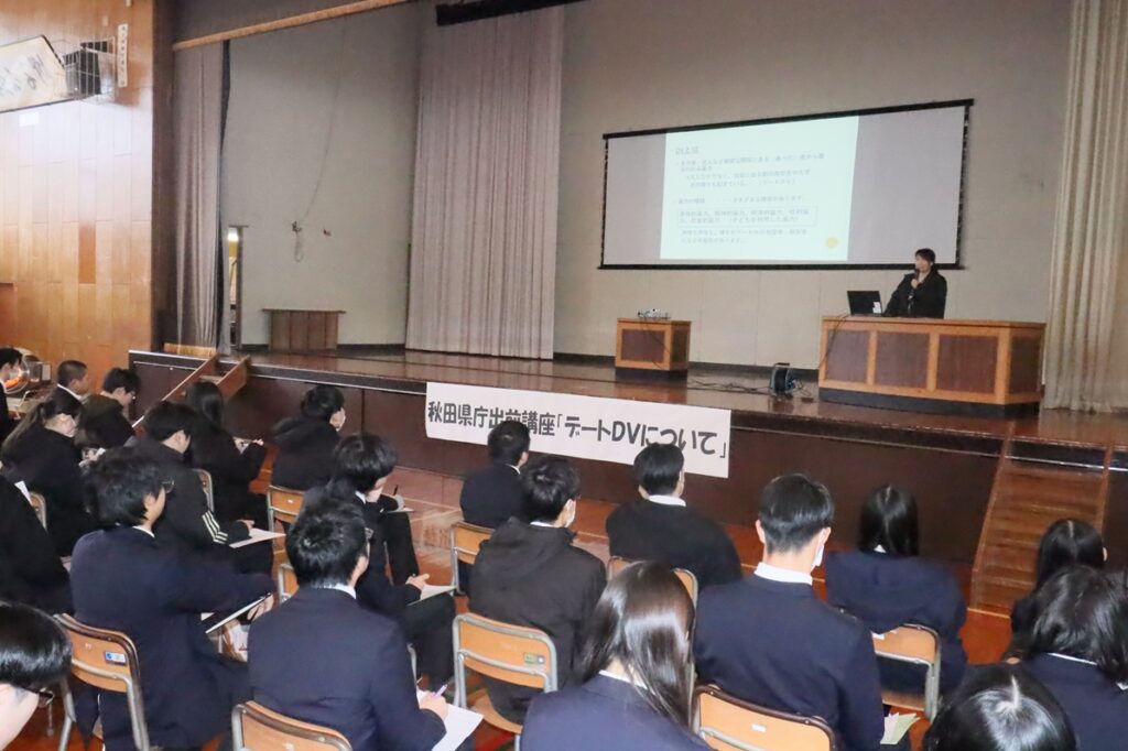 12月12日(金)、秋田県庁出前講座「デートDVについて」を、全校生徒対象に実施しました。