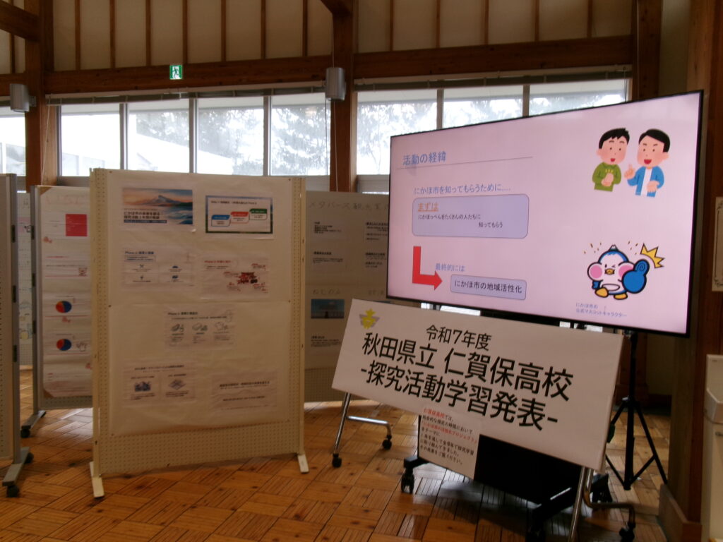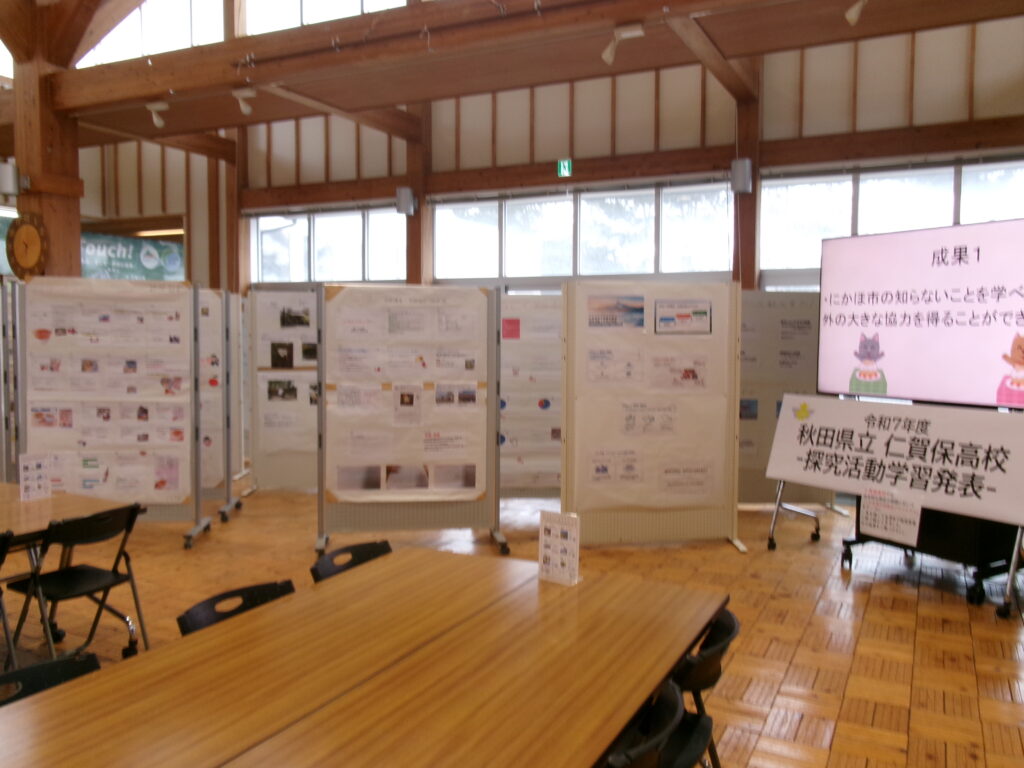 3月7日(土)から3月17日(火:最終日は午前)までの期間、にかほ市観光拠点センター「にかほっと」にて、探究学習の展示を行っています。